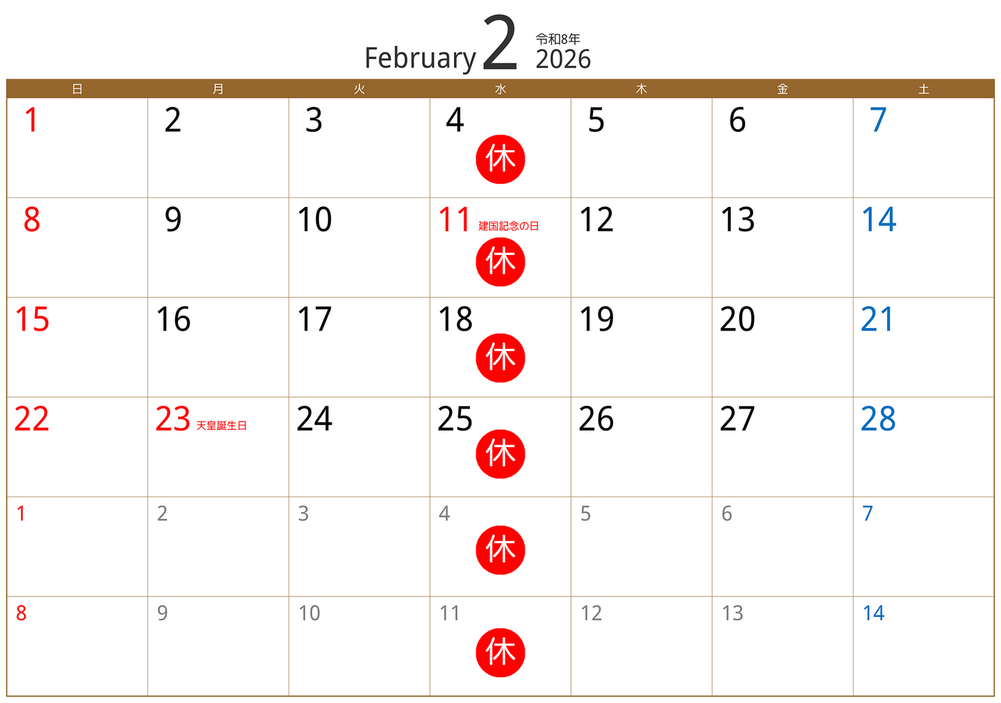 | ・2026.01.31 | 2月の営業カレンダーをUPいたしました。 |